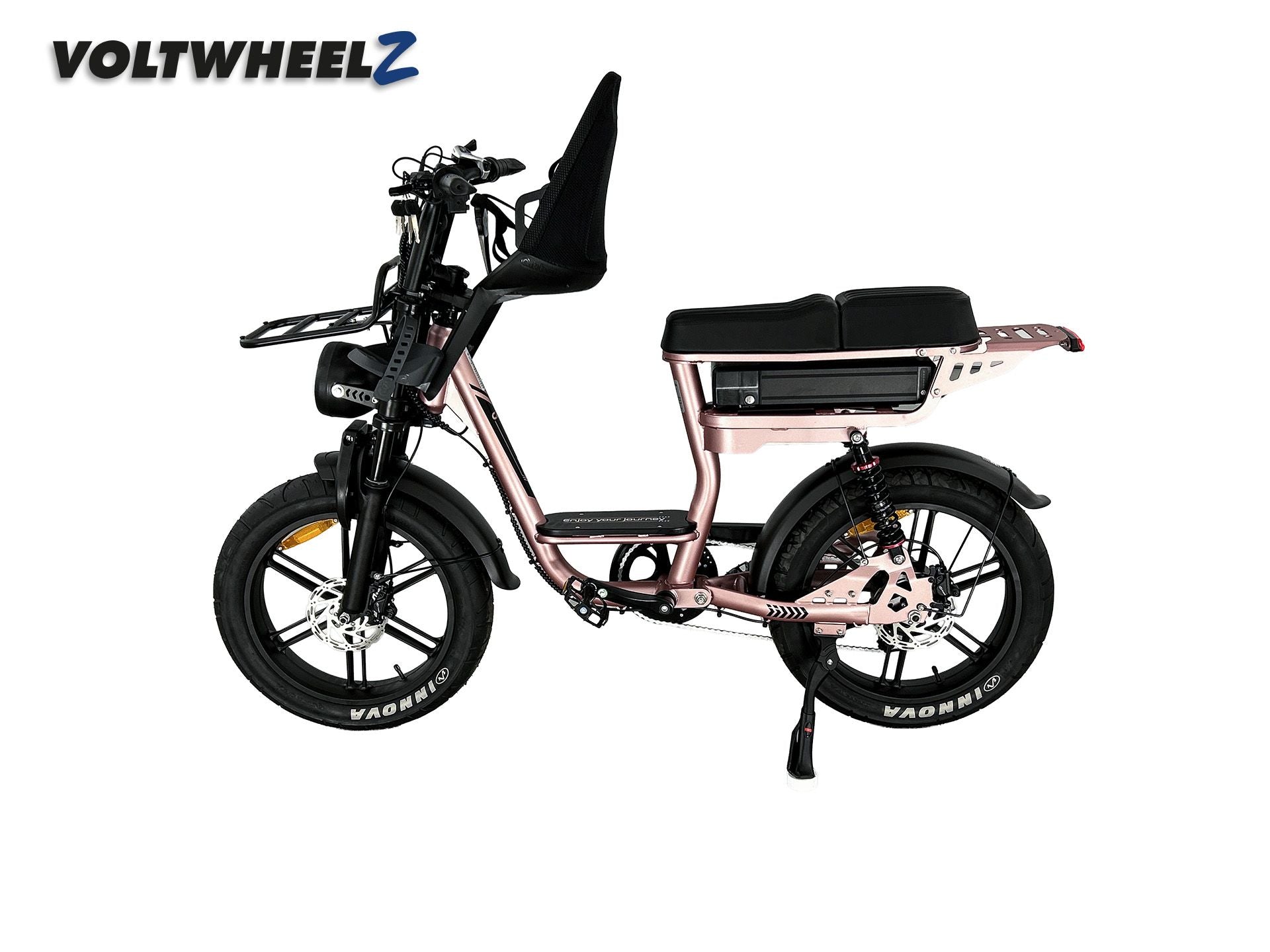Als specialist in elektrische fatbikes en fatbike onderdelen weten wij precies waar een goede family fatbike aan moet voldoen. Dit model combineert het gemak van een lage instap met de luxe en comfort van een moderne elektrische fatbike. Of je nu een kind of twee kinderen wilt meenemen, met deze uitvoering is het mogelijk. Als je nog vragen hebt, neem gerust contact met ons op via +31 853039242 of klantenservice@voltwheelz.nl. Daarnaast mag je altijd een proefrit inplannen in onze winkel in Rotterdam.